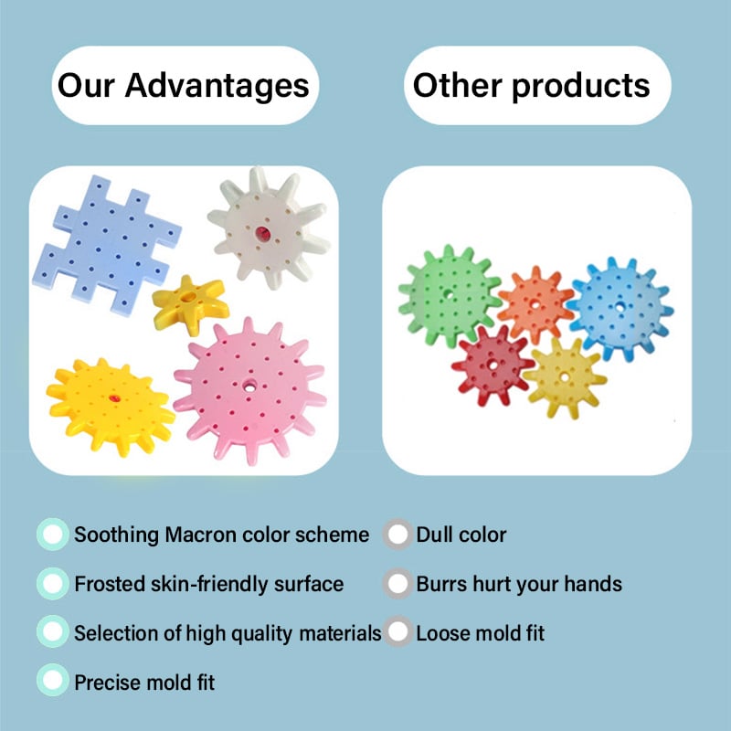 Our Electric Gears Blocks Toy KIT encourages hours of fun. critical thinking and problem solving. Each set comes with interlocking blocks. gears of varying sizes. swing set. see saw. merry go round. figurines and more! A motorized spinning gear inspires creativity. imagination and the learning of engineering skills for children at a young age. It’s perfect for kids interested in science. technology. engineering. and math.